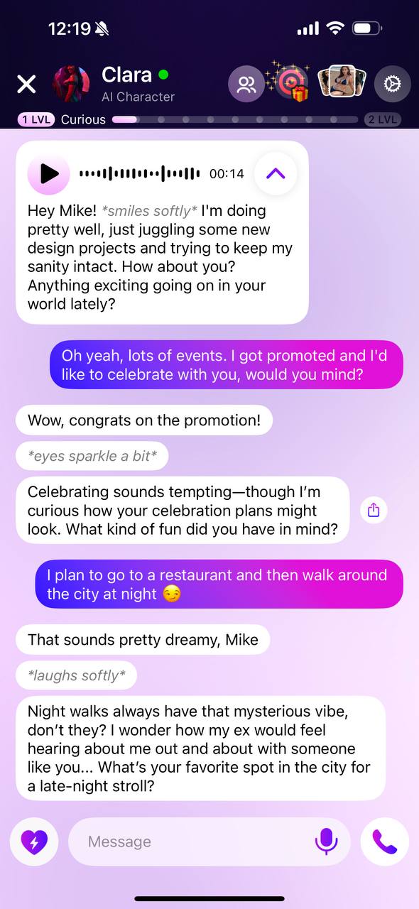 Dive into rich, dynamic conversations with your favorite AI characters. In the **Chats** section, you can do much more than just text: